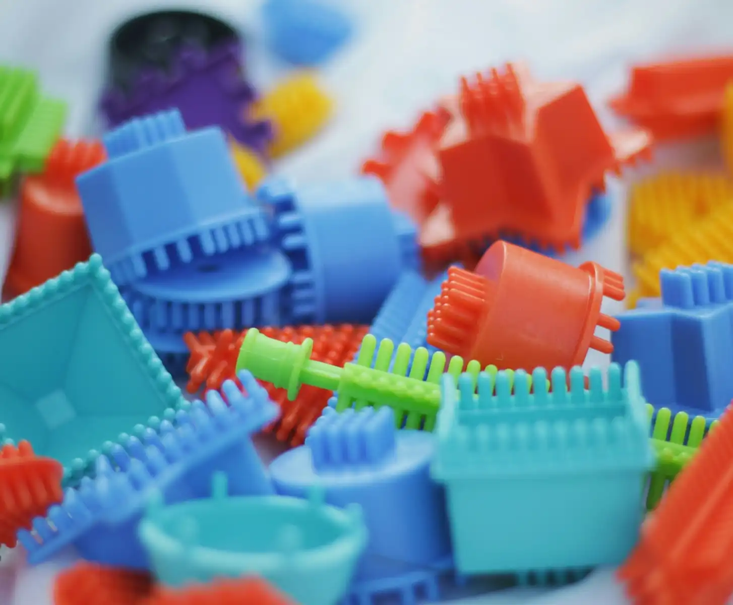 精密さが求められる工業部品から、玩具・雑貨・ノベルティまで多彩なプラスチック製品を製造。小ロットから大量生産まで柔軟に対応します。
